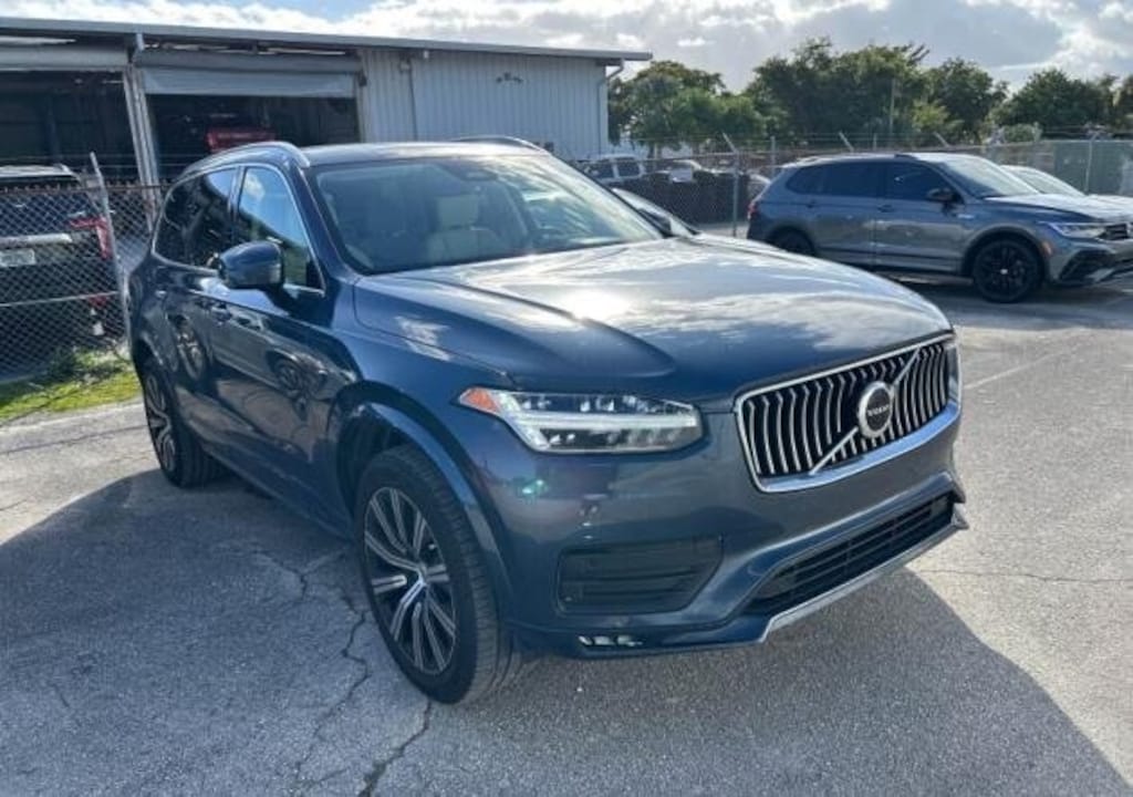 Volvo Certified Pre-Owned Certified, AWD, Denim Blue Metallic, Blond w/Leatherette Upholstery w/Blond Interior, Wheels: 20" 10-Spoke Black Diamond Cut Alloy, 10 Speakers, 3rd row seats: bucket, 4-Wheel Disc Brakes, ABS brakes, Air Conditioning, Alloy wheels, AM/FM radio: SiriusXM, Anti-whiplash front head restraints, Apple CarPlay, Auto High-beam Headlights, Auto-dimming door mirrors, Auto-dimming Rear-View mirror, Automatic temperature control, Brake assist, Bumpers: body-color, Delay-off headlights, Driver door bin, Driver vanity mirror, Dual front impact airbags, Dual front side impact airbags, Electronic Stability Control, Emergency communication system: Volvo Cars App w/4 Year Subscription, Exterior Parking Camera Rear, Four wheel independent suspension, Front anti-roll bar, Front Bucket Seats, Front Center Armrest w/Storage, Front dual zone A/C, Front fog lights, Front reading lights, Fully automatic headlights, Garage door transmitter: HomeLink, Heated door mirrors, Heated Front Bucket Seats, Heated front seats, Illuminated entry, Knee airbag, Leather Shift Knob, Leatherette Upholstery, Low tire pressure warning, Memory seat, Navigation System, Occupant sensing airbag, Outside temperature display, Overhead airbag, Panic alarm, Passenger door bin, Passenger vanity mirror, Power door mirrors, Power driver seat, Power moonroof, Power passenger seat, Power steering, Power windows, Radio data system, Radio: High Performance Audio System, Rain sensing wipers, Rear air conditioning, Rear anti-roll bar, Rear dual zone A/C, Rear fog lights, Rear reading lights, Rear seat center armrest, Rear window defroster, Rear window wiper, Remote keyless entry, Security system, Speed control, Speed-sensing steering, Split folding rear seat, Spoiler, Steering wheel mounted audio controls, Tachometer, Telescoping steering wheel, Traction control, Trip computer, Turn signal indicator mirrors, Variably intermittent wipers, AWD, Denim Blue Metallic, Blond w/Leatherette Upholstery w/Blond Interior, Wheels: 20" 10-Spoke Black Diamond Cut Alloy.